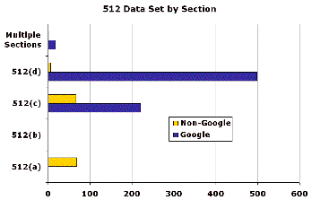 Fig. ES-1. The Chilling Effects 512 data set, broken down by DMCA Section and recipient OSP (Google and NonGoogle OSPs).