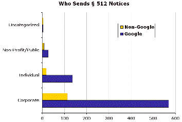[9] A relatively high number, 35%, of Google notices are coded “unclassifiable” or “no information,” with respect to sender characteristics. This is because 512 notices do not always contain a great deal of detail. Given this, it may be that percentages are not entirely accurate across the data set.