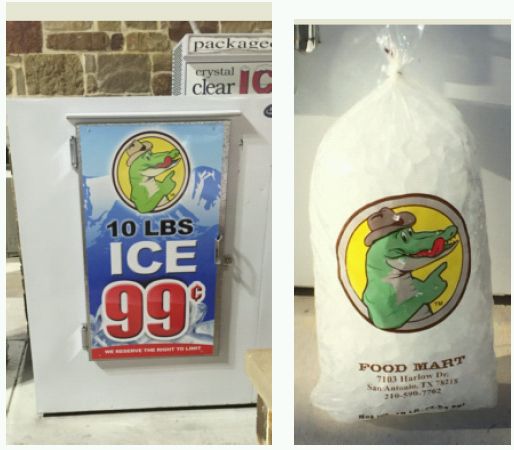 Last but not least, ice machines with a company logo on them? Buc-ee's is claiming it belongs to them. Next Buc-ee's will sue the sun, a.k.a. SOL, for being round with a yellow background. |
